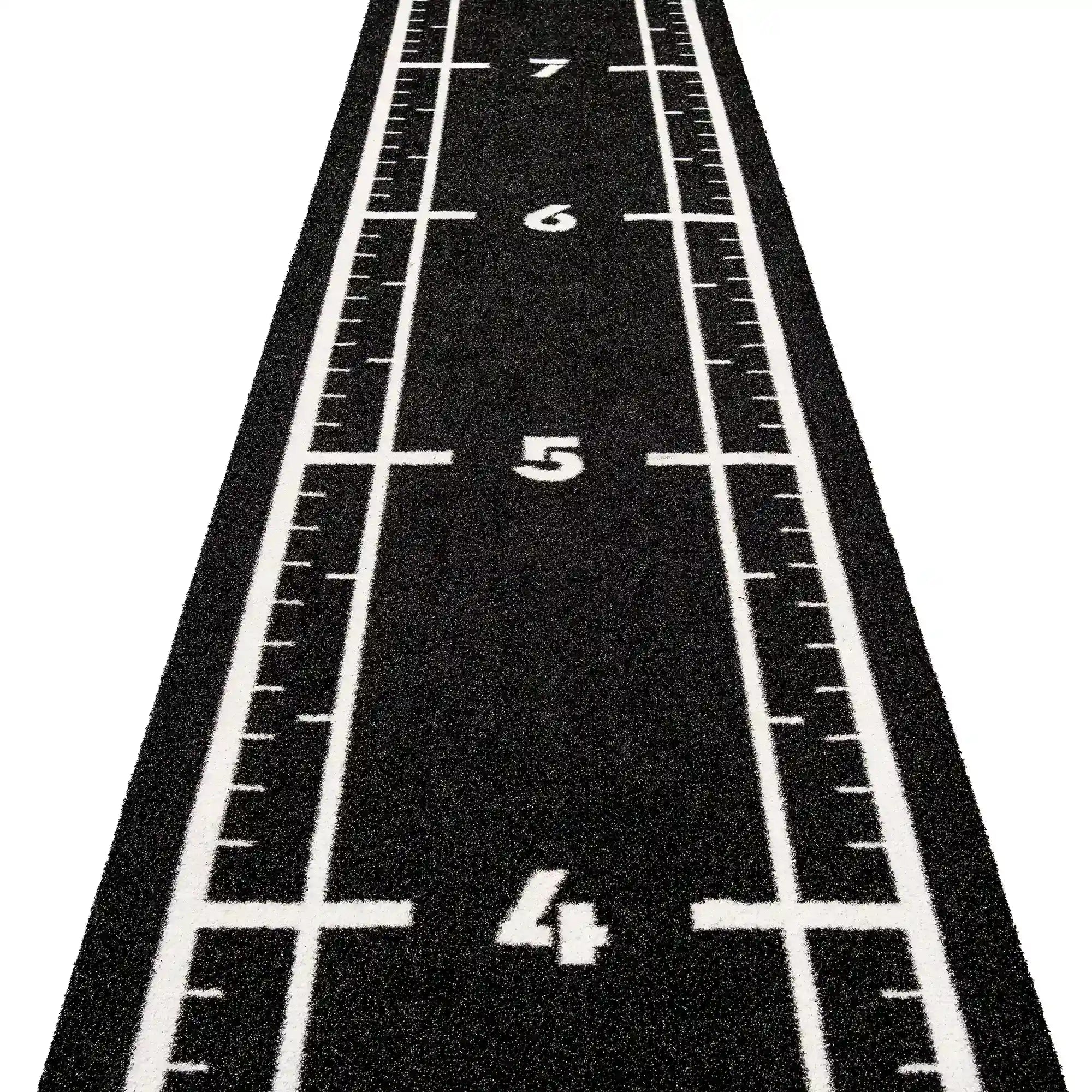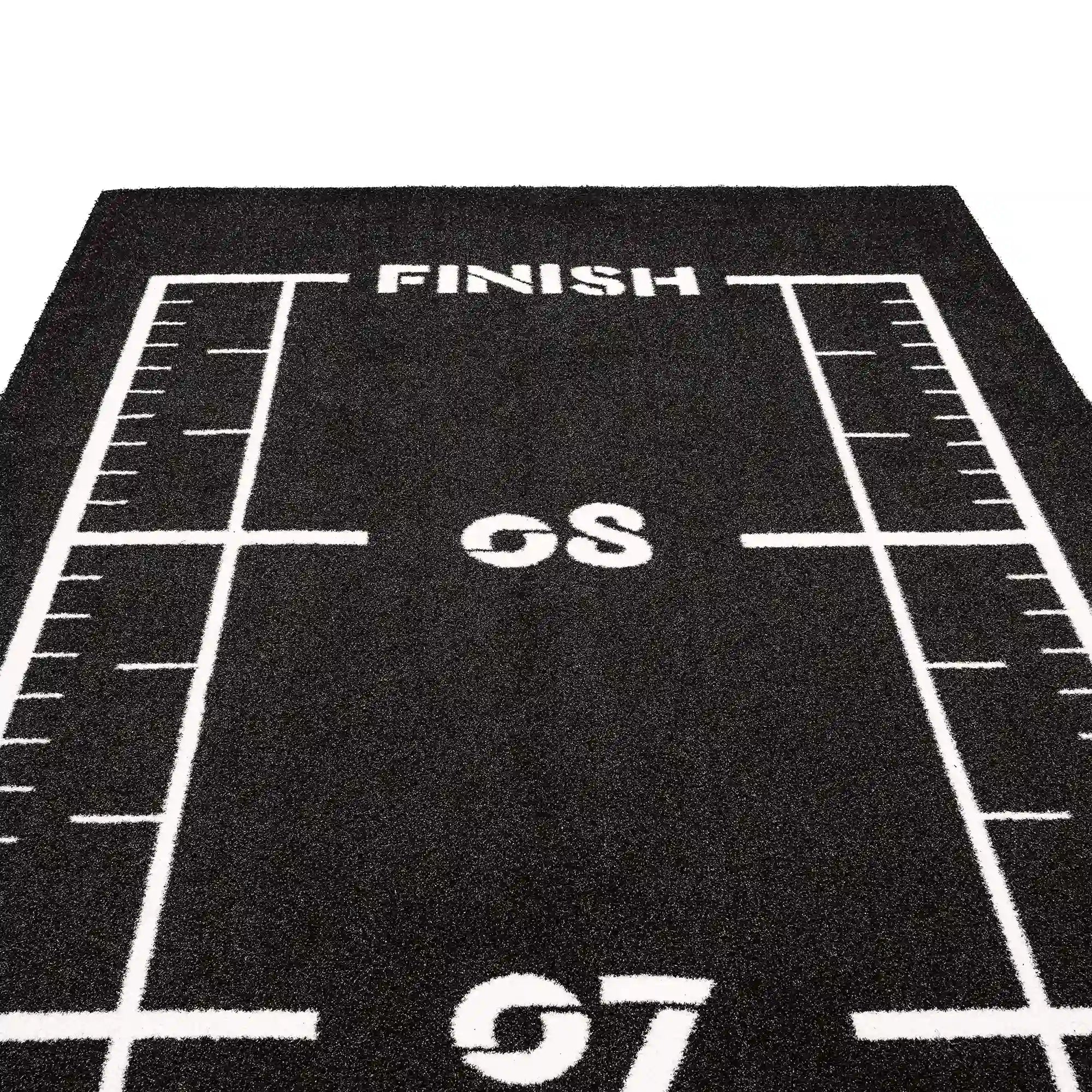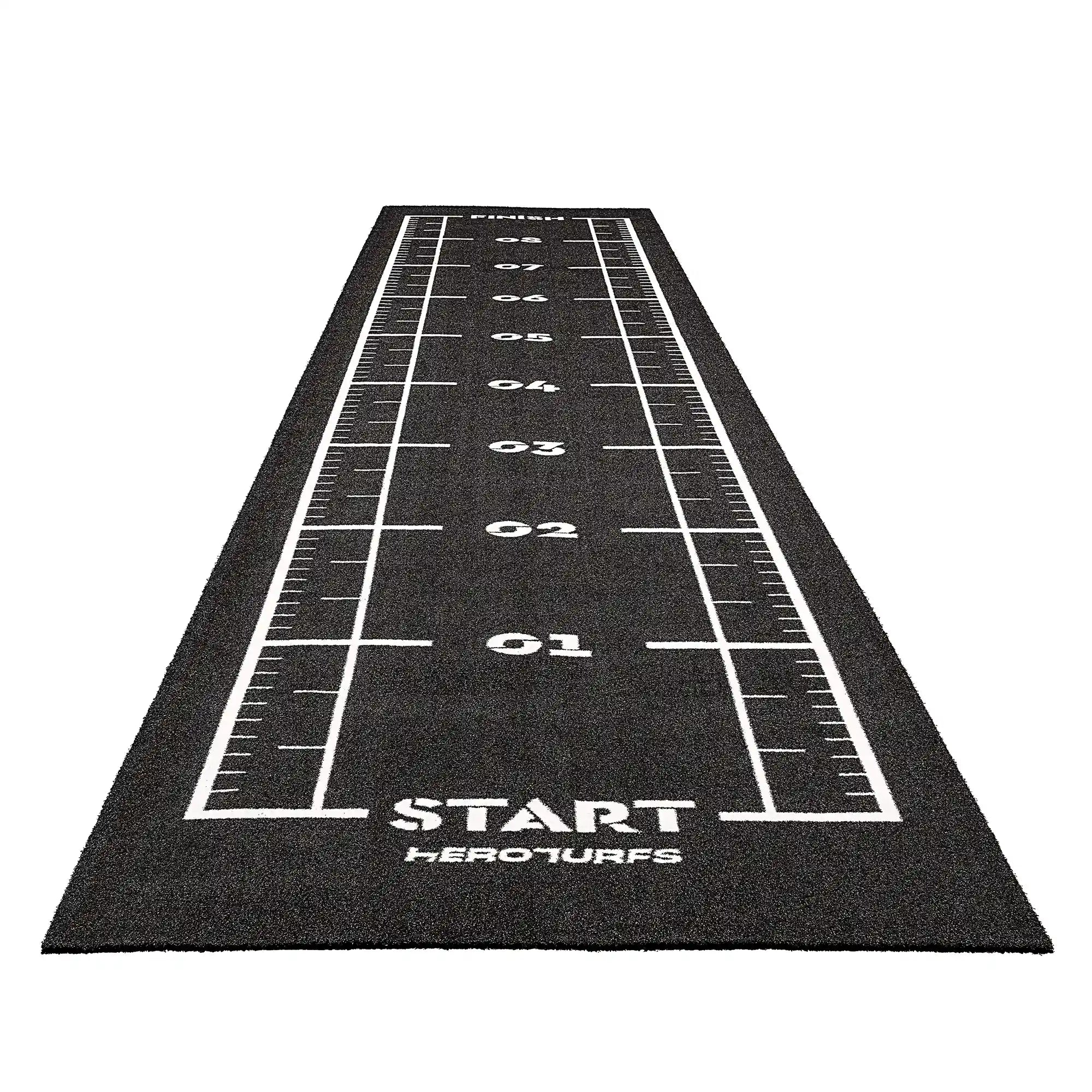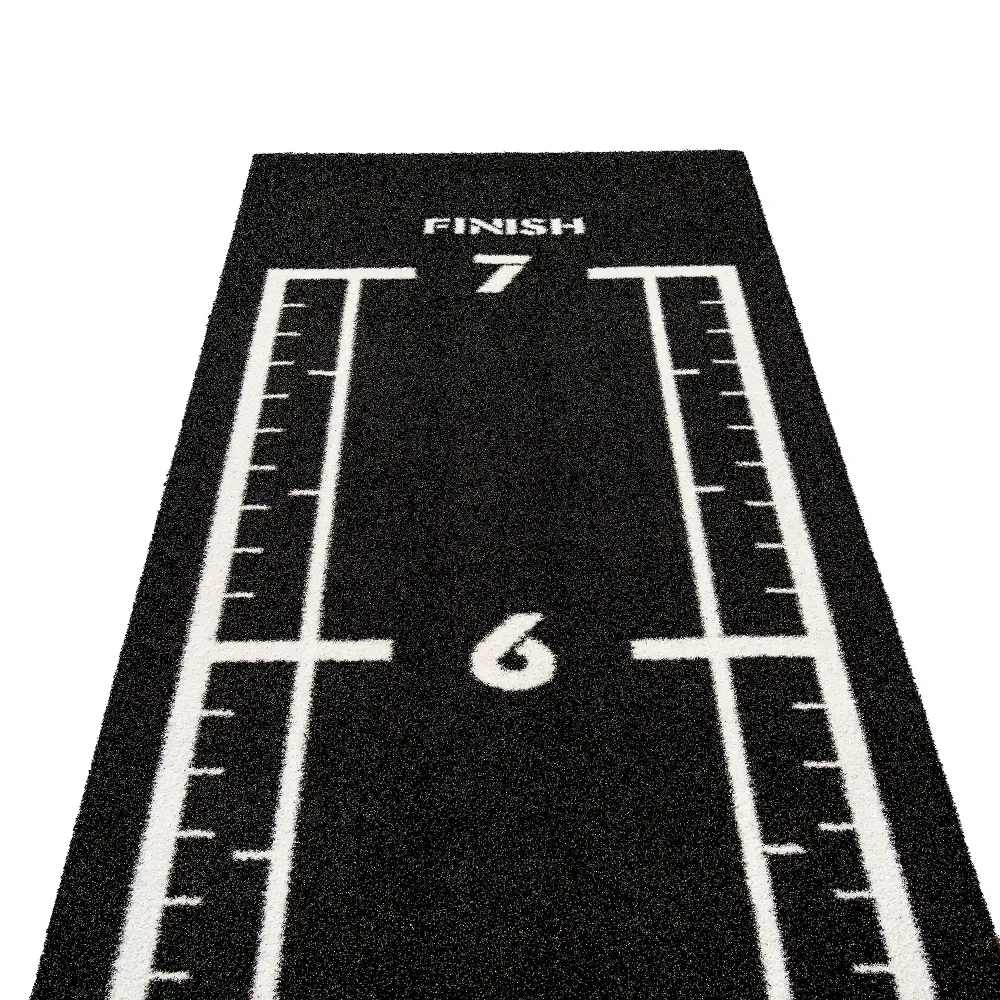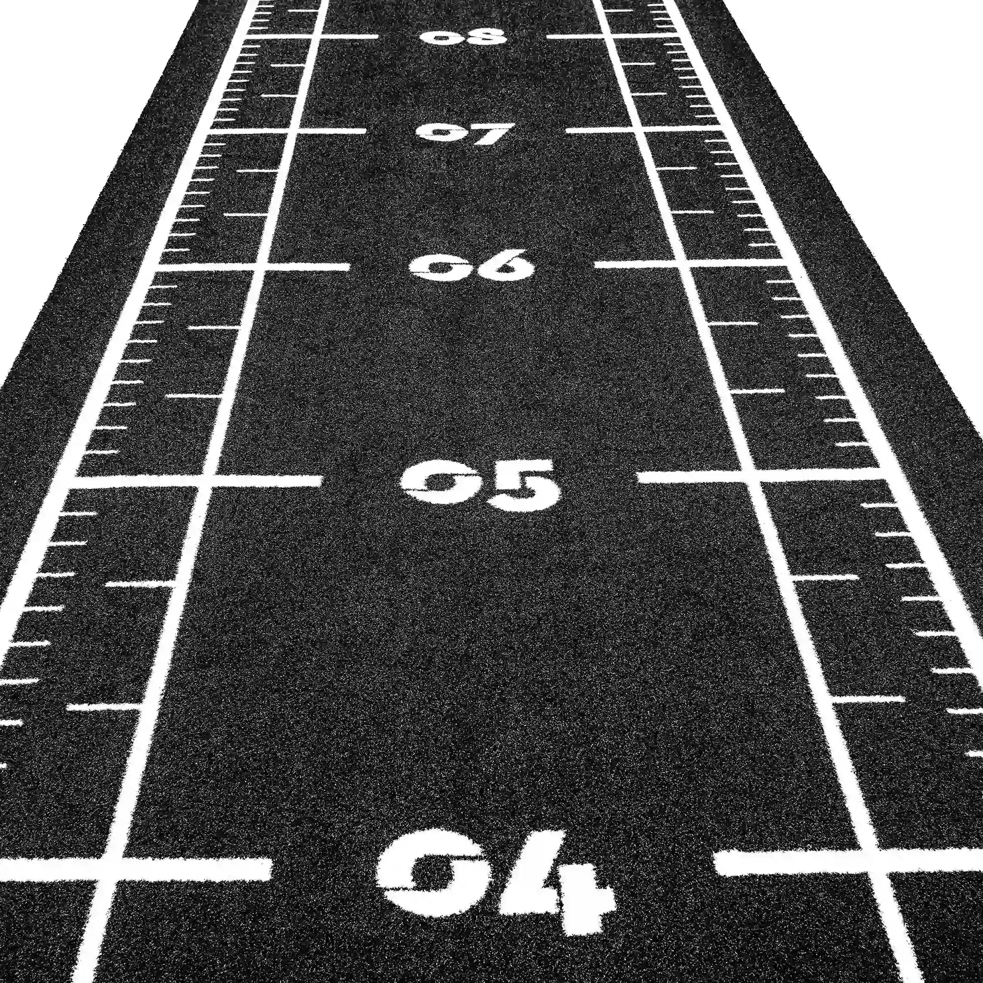 High-performance black sled track with integrated white lines and numbers. Designed for functional training, sled workouts, and high-intensity fitness zones.