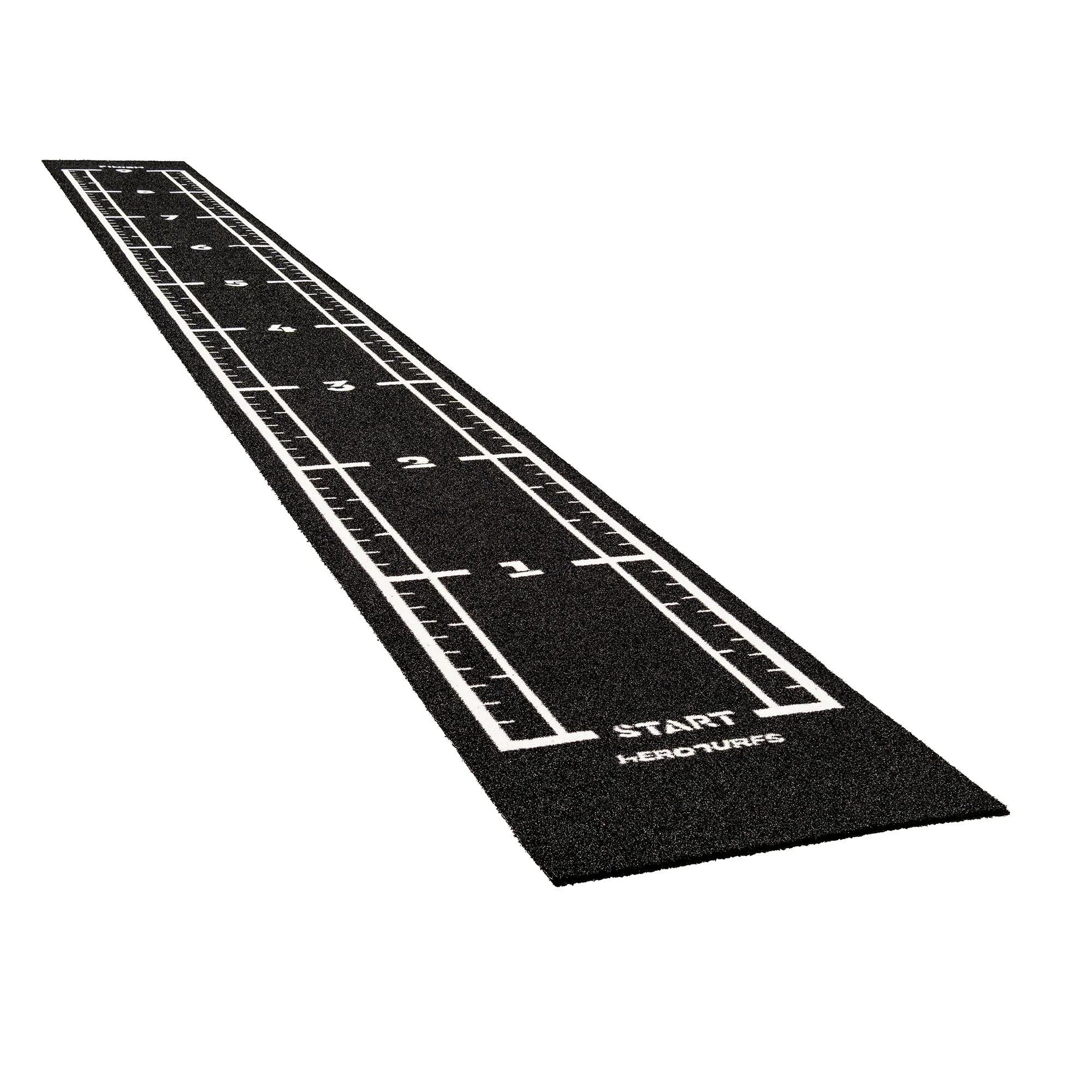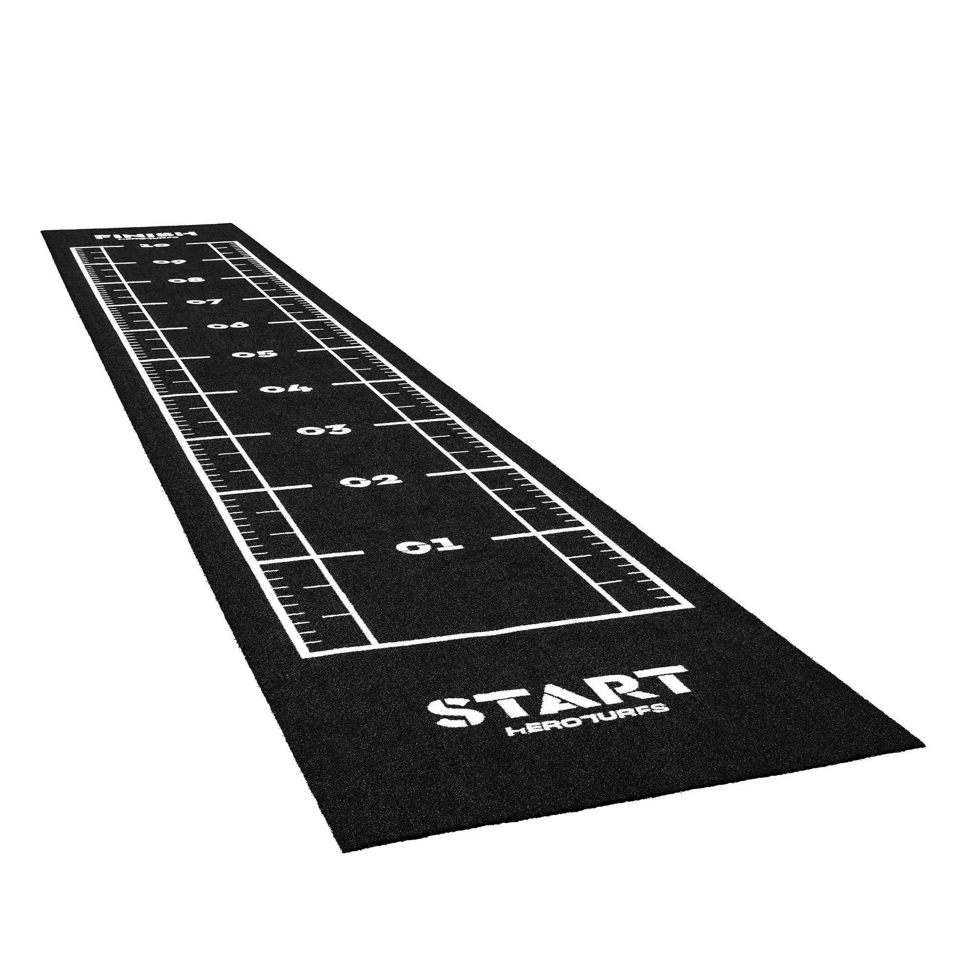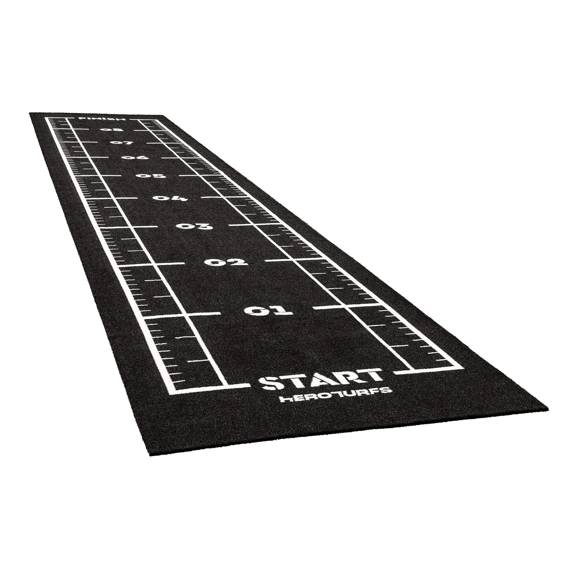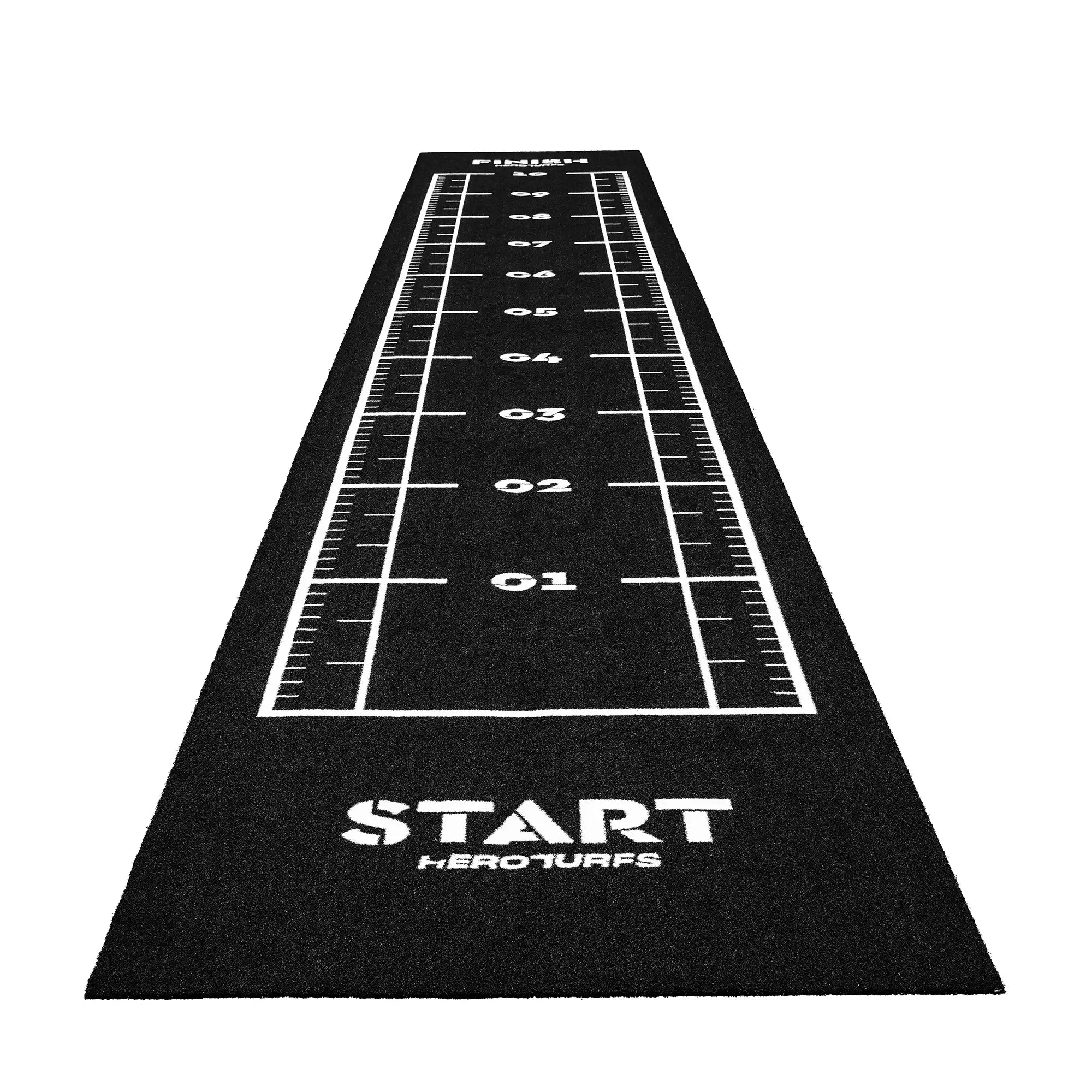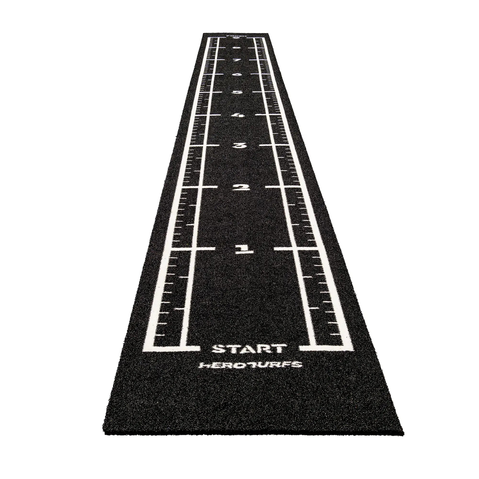 High-performance black sled track with integrated white lines and numbers. Designed for functional training, sled workouts, and high-intensity fitness zones.